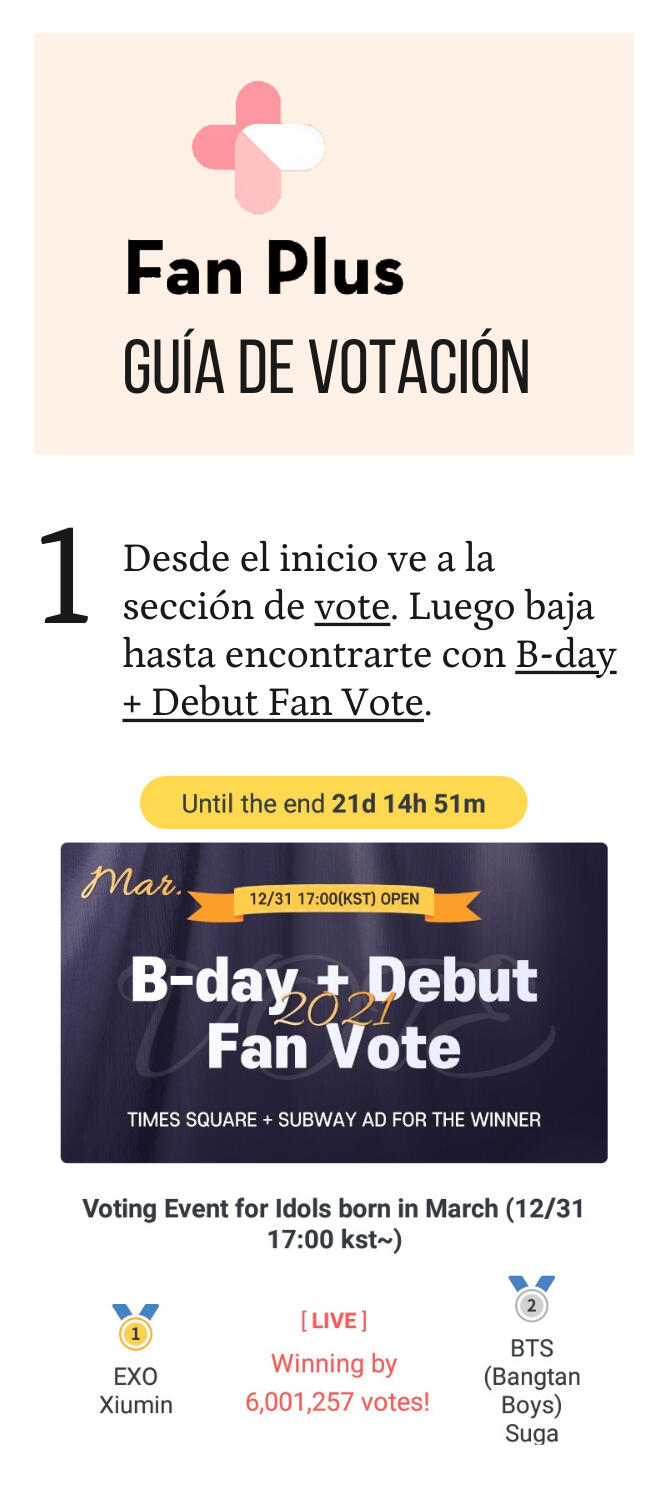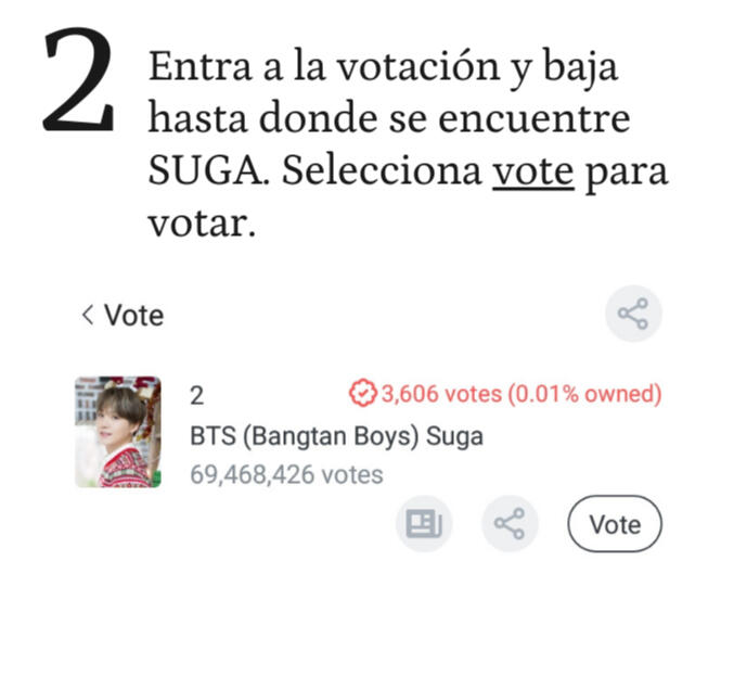 En este momento se encuentra vigente la votación de ídolos nacidos en marzo, entra a la última sección para ver el tutorial de como votar, los premios que tienen los ganadores y en que lugar se encuentra SUGA en este momento.